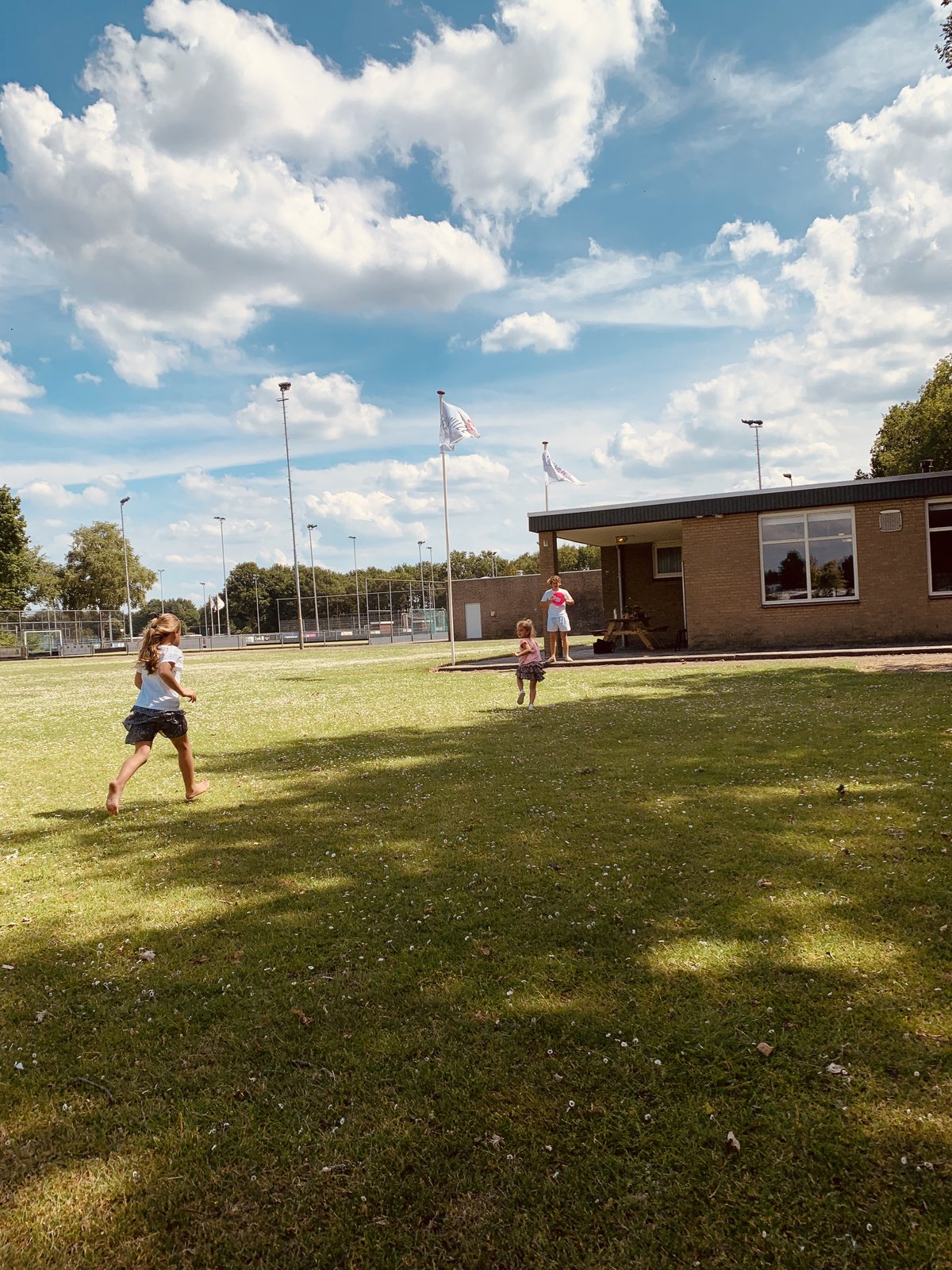 De opvanglocatie ligt in een groene omgeving: er is een groot grasveld voor de deur, omringd door bomen. Daar kunnen de kinderen naar hartenlust ravotten en buitenspelen. Het pand heeft openslaande tuindeuren met een overdekt terras voor het vakantiegevoel. Ook mogen de kinderen gebruikmaken van de grote sportvelden en een mooi klein oefenveld om met kleinere groepen te sporten. De locatie ligt centraal tussen de voetbal- en hockeyvelden.