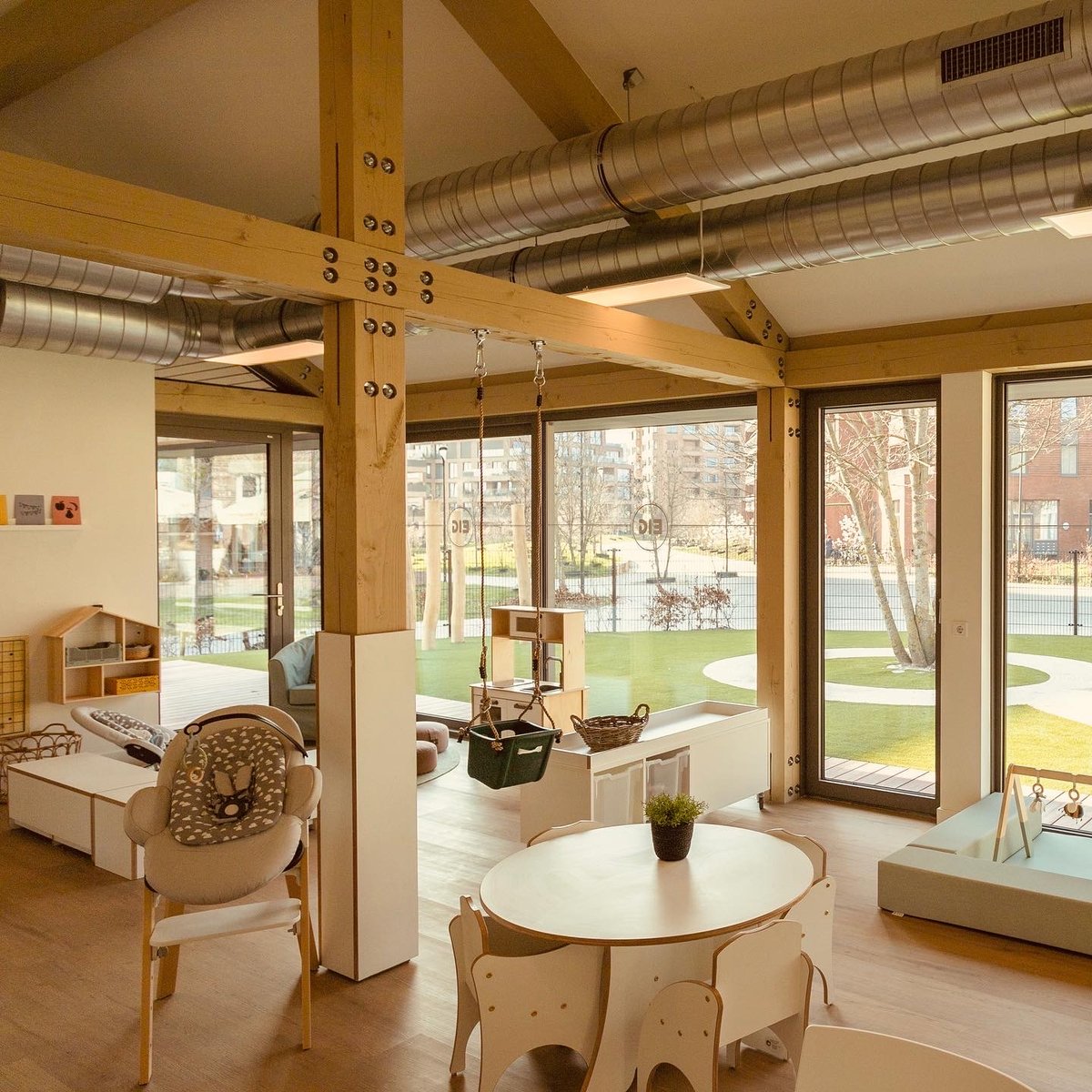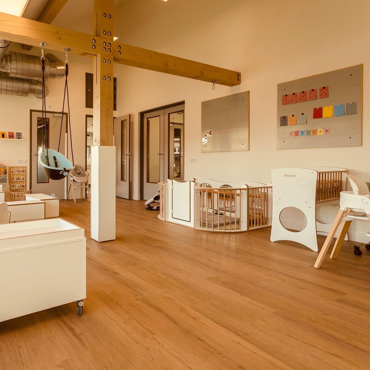 Wanneer je in de vroege ochtend je kind bij ons brengt kom je terecht op een rustig kleinschalig groen terrein in een stadse omgeving. Het kinderdagverblijf betreft een duurzame nieuwbouw. De verblijfruimten staan in directe verbinding met de buitenomgeving middels grote ramen die tot de grond lopen en openslaande tuindeuren. Hiermee halen we de buitenwereld naar binnen en is de buitenwereld voor onze kleinste kinderen een groot bewegend schilderij. We zijn veel buiten te vinden in onze natuurtuin waar het grasveld een heerlijke plek is en waar we 's zomers in de schaduw van de bomen kunnen spelen. Voor de allerkleinste zijn geborgen speelplekken aanwezig. Voor de oudere kinderen is de mini-fietsroute en het buiten zand- en wateratelier met buitenspeelkeuken favoriet. Is het regenachtig weer, dan trekken we onze regenpakjes en rubber laarsjes aan om van de regenplassen te genieten. In het voorjaar laten we de kinderen kennis maken met onze kinderkas waar we tomatenplantjes, tuinkers en bieslook laten groeien Later op de dag versieren we ons eten hiermee waardoor het nog gezonder en lekkerder wordt.